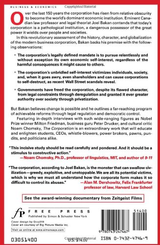 The Corporation Pathological Pursuit Of Profit And Power Joel Bakan.pdf THE CORPORATION PATHOLOGICAL PURSUIT OF PROFIT AND POWER JOEL BAKAN The Corporation Pathological Pursuit Of Profit And Power Joel Bakan by Sarah ... View This Document